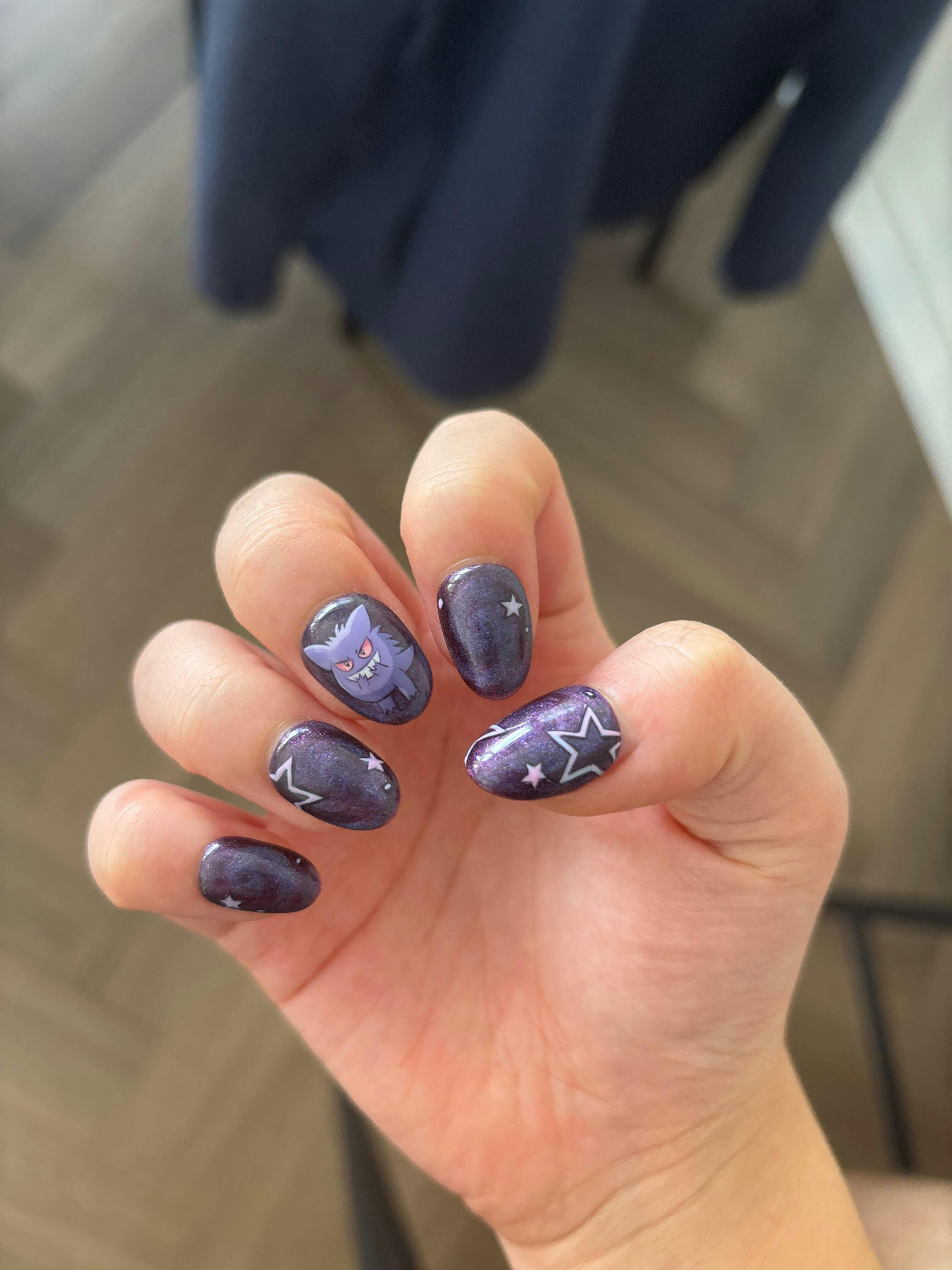Channel your inner Gengar with this custom-painted Pokémon press-on set.