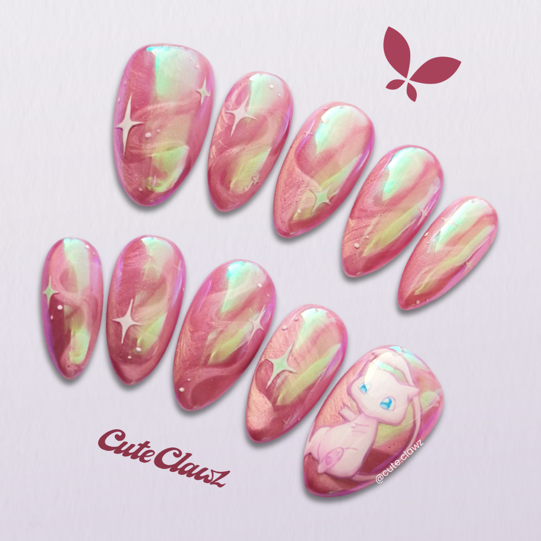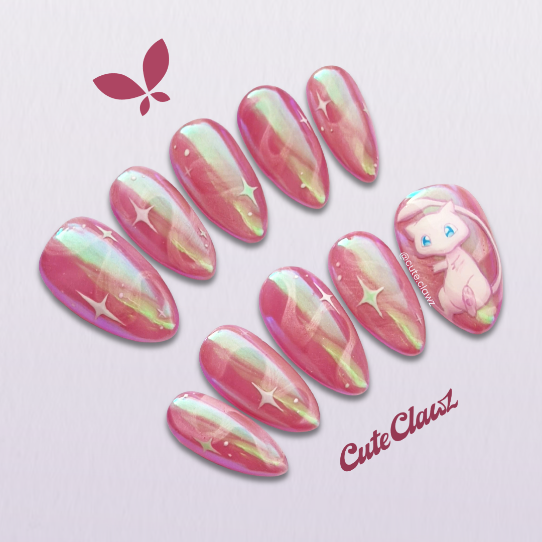 Channel your inner Mew with this custom-painted Pokémon press-on set.